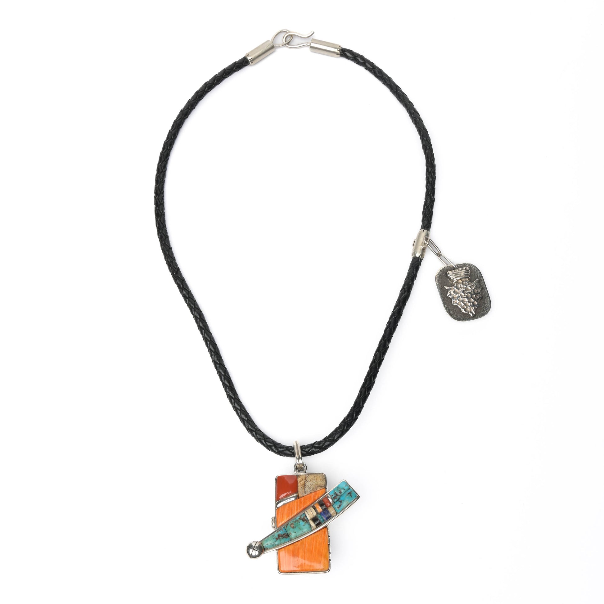 Inlaid, Reversible Comet Pendant with a Small Side Pendant, on a Leather Lanyard