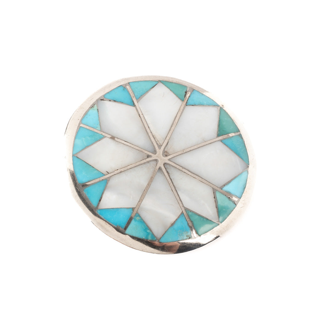 Vintage Silver Pin with Turquoise & Shell Inlay