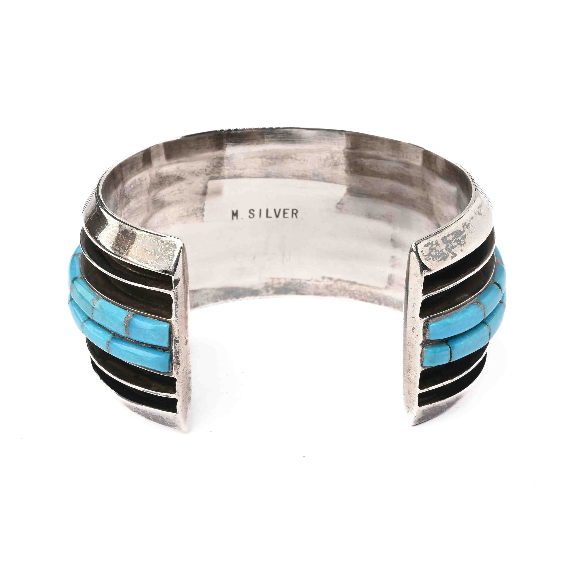 Vintage Wide Silver Bracelet with Turquoise Bead Strands